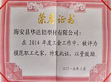 模范職工之家證書
